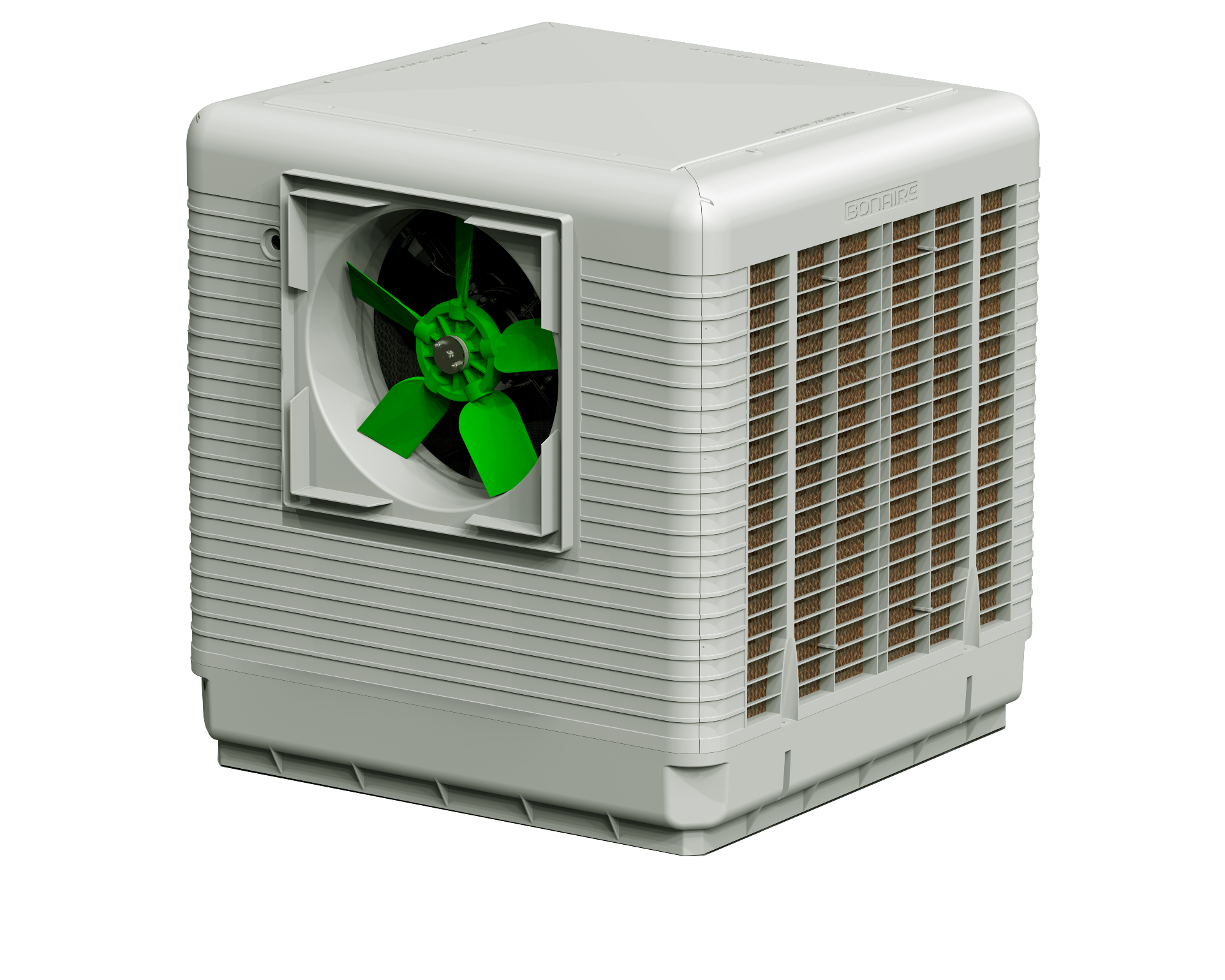 The all new Durango combined roof top and side discharge cooler is designed to replace all existing unit brands. Each Durango unit can be installed either as a down discharge roof top unit or side discharge. The Bonaire Durango 7000 Rooftop cools up to 2500 square feet area.